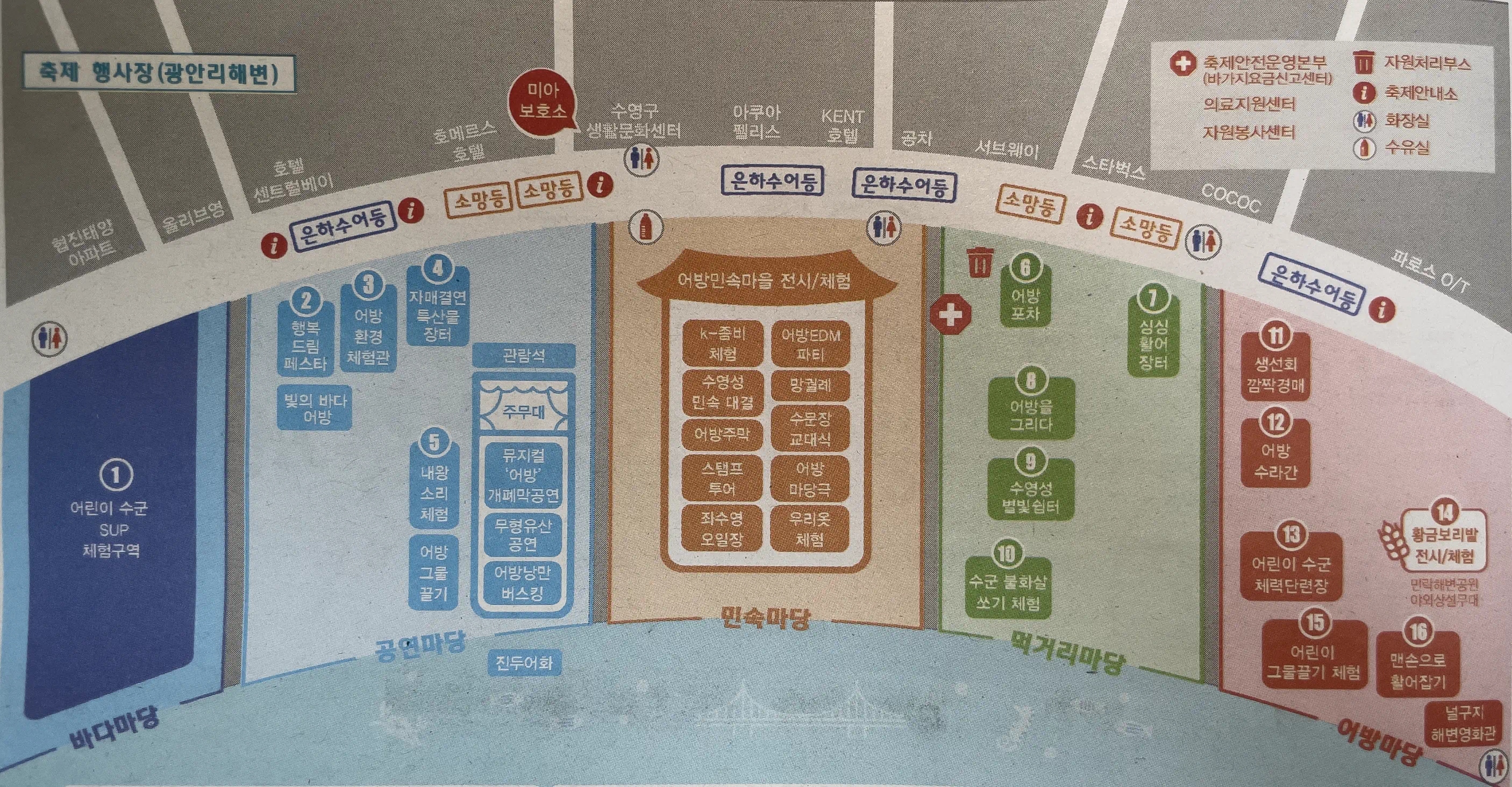 | 자가용 | 광안리 공영주차장 or 민락수변공원 주차장 이용 | 축제 기간 조기 만차 주의 |