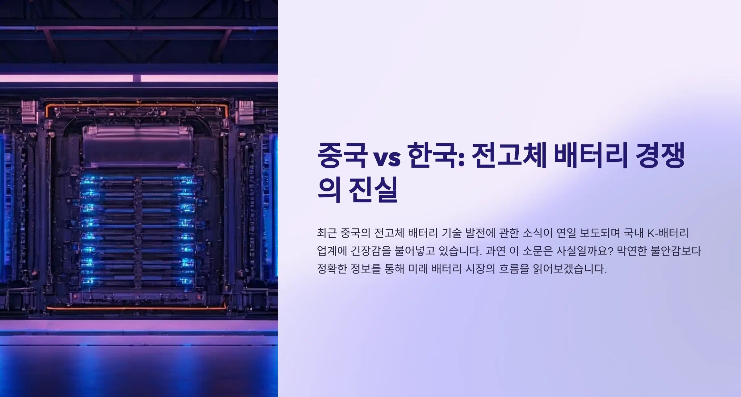 최근 전기차 시장의 뜨거운 감자로 떠오른 전고체 배터리 기술. 중국의 BYD와 화웨이가 이 분야에서 획기적인 발전을 이루었다는 소식이 연일 보도되며 국내 K-배터리 업계에 긴장감을 불어넣고 있습니다. 과연 이러한 소문은 사실일까요? 오늘은 매체마다 중국의 배터리 산업에 대한 검증없이 무조건 좋다고 말하며 대한민국 배터리 산업에 대해 우려를 하는 시선들에 대해 심층 분석을 바탕으로, 중국 전고체 배터리 기술의 현주소를 냉철하게 진단하고 K-배터리의 경쟁력을 조명합니다. 막연한 불안감보다는 정확한 정보를 통해 미래 배터리 시장의 흐름을 읽는 통찰력을 얻어가시길 바랍니다.