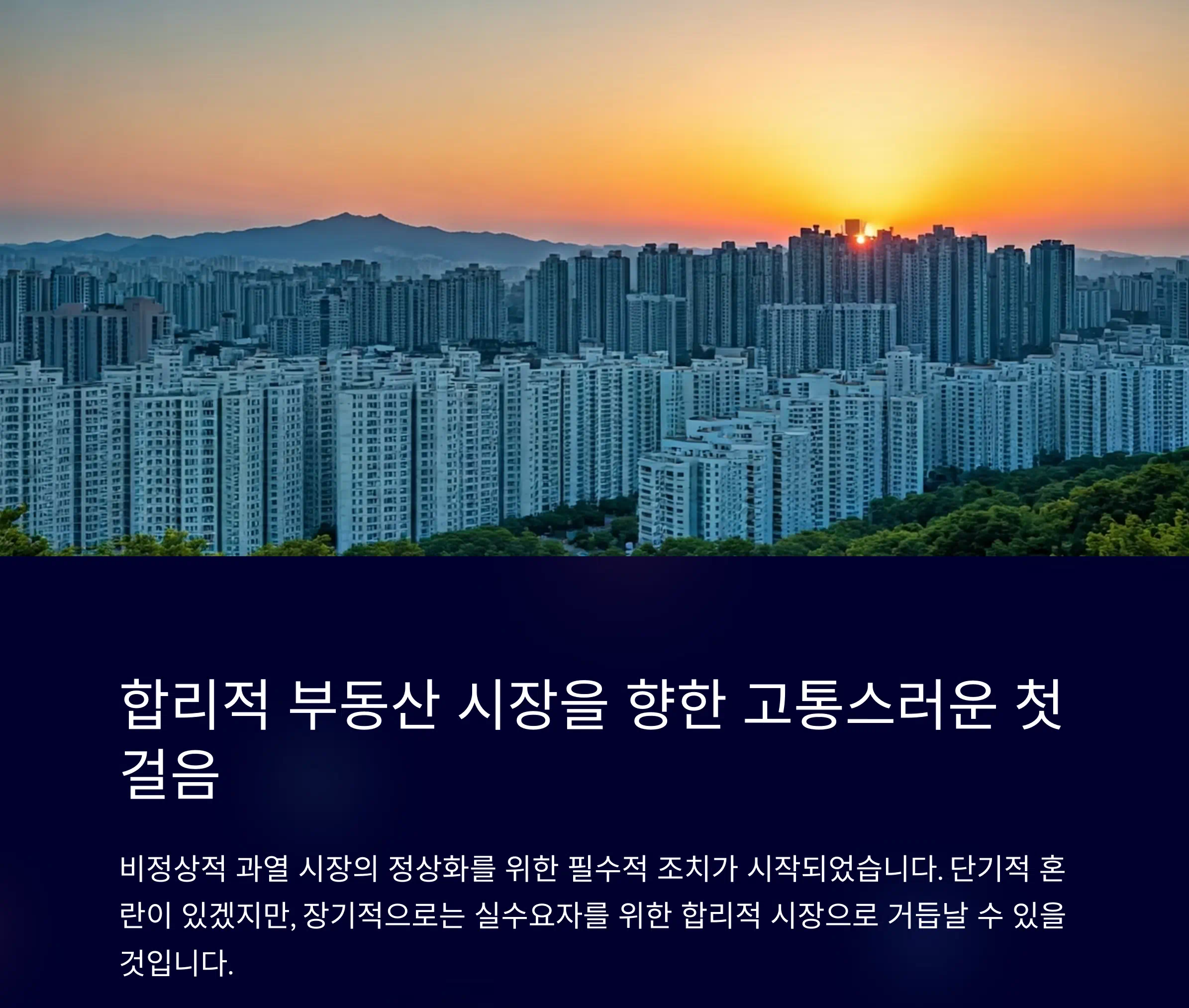 과연 한국의 부동산 시장은 이번 규제를 통해 '집값 끝판왕'이라는 오명에서 벗어나 안정적인 주거 가치를 제공하는 시장으로 거듭날 수 있을지, 앞으로의 변화가 주목됩니다.
